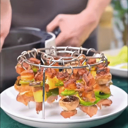 Say goodbye to blotchy veggies or half-raw meats—this rack ensures vegetables and meat skewers cook uniformly, locking in juiciness and flavor.The secret lies in its food-grade high-conductivity alloy (3x faster than regular metals!) paired with a bottom ring-shaped heat-gathering groove. Heat radiates from the center outward, wrapping each skewer like an "invisible insulation layer." Whether it’s paper-thin mushroom slices or thick pork belly, they’ll absorb heat evenly in no time—locking in moisture for that perfect "charred outside, tender inside" texture.